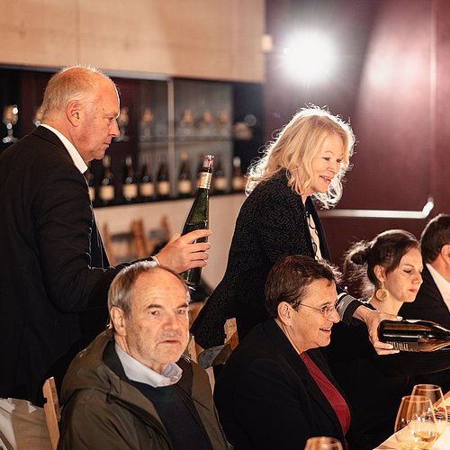 Nach dem offiziellen Teil lud die Präsidentin zu einer Weinverkostung: Master of Wine Frank Smulders stellte in einer Masterclass Gewürztraminer aus Südtirol und dem Elsass gegenüber und warf vor allem einen Blick auf ihr Reifepotenzial. „Im Elsass werden 50 Prozent der Weine von Genossenschaften produziert“, erklärte Smulders, „sie drücken das Niveau.“ Dagegen stellte er Südtirols Genossenschaften ein ausgezeichnetes Zeugnis aus: „In Südtirol spielen die genossenschaftlichen Kellereien ganz vorne mit, das gibt es wohl kein zweites Mal.“