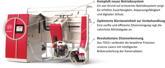 Auch die neue Eartag ID bietet mehr Flexibilität bei der Tiererkennung und kann individuell erweitert werden. Zusammen mit dem präzisen TDS2+ Zitzenerkennungssystem, dem bewährten I-Flow-Konzept und der intelligenten Herdenmanagement-Software Lely Horizon profitierst Du von maximaler Effizienz, Kontrolle und Tierkomfort.