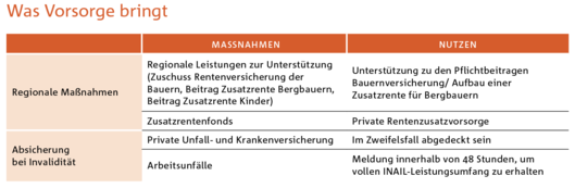 - Beanspruchung von regionalen Leistungen, wie der Zuschuss auf die Rentenversicherung der Bauern, der Beitrag auf die Zusatzrente der Bergbauern;