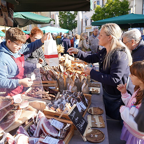 Seit Jahrhunderten feiern weltweit Bäuerinnen und Bauern ein Fest, um für die Ernte zu danken und um auf die Qualität und Vielfalt ihrer Produkte aufmerksam zu machen. Der Südtiroler Bauernbund begeht diese Tradition seit Jahren mit dem Erntedankfest auf dem Bozner Waltherplatz. 40 Direktvermarkterinnen und Direktvermarkter präsentierten auch heuer wieder ihre Produkte und luden zum Verkosten und zum Kauf ein. „Wir wollen den Kontakt zwischen Produzenten und Konsumenten ermöglichen und zeigen, welch tolle Produkte unsere Bauern herstellen“, erklärte Landesobmann Daniel Gasser bei der Eröffnung.