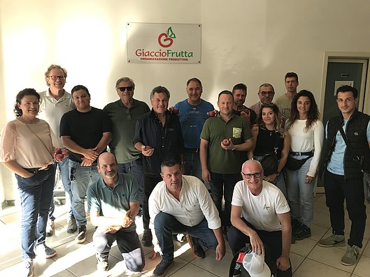 Die Reisegruppe des Bundes Südtiroler Baumschuler beim Betrieb Giacciofrutta