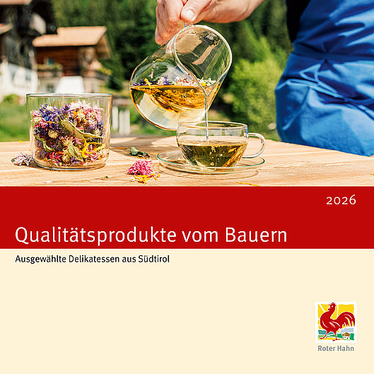 Die Direktvermarktung in Südtirol wächst weiter: Immer mehr bäuerliche Familien setzen auf handwerklich veredelte Produkte aus eigener Herstellung. Über 900 Lebensmittel tragen inzwischen das Qualitätssiegel „Roter Hahn“. Die neu erschienene Broschüre „Qualitätsprodukte vom Bauern“ stellt diese Produkte und ihre Erzeugerinnen und Erzeuger vor – authentisch, regional und mit einem klaren Qualitätsversprechen.