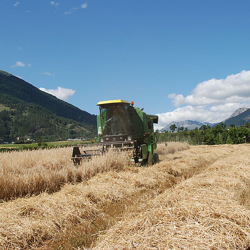 Für viele Landwirte ist Regiokorn inzwischen ein attraktives zweites Standbein. Die garantierte Abnahme des Getreides, faire Preise und die Abholung ab Hof durch die Meraner Mühle bieten Planungssicherheit und eröffnen neue Perspektiven – auch für Betriebe, die bisher kein Getreide angebaut haben. Auf einer Anbaufläche von rund 100 Hektar – verteilt auf den Vinschgau, das Puster- und Eisacktal sowie den Tschögglberg – wurden in diesem Jahr etwa 200 Tonnen Roggen, 100 Tonnen Dinkel geerntet. Auch Gerste und Buchweizen gewinnen zunehmend an Bedeutung. Die gute Witterung und der effiziente Ernteeinsatz – unterstützt durch einen neuen Mähdrescher des Maschinenrings – sorgten für hohe Qualitäten und zufriedene Gesichter bei allen Beteiligten.