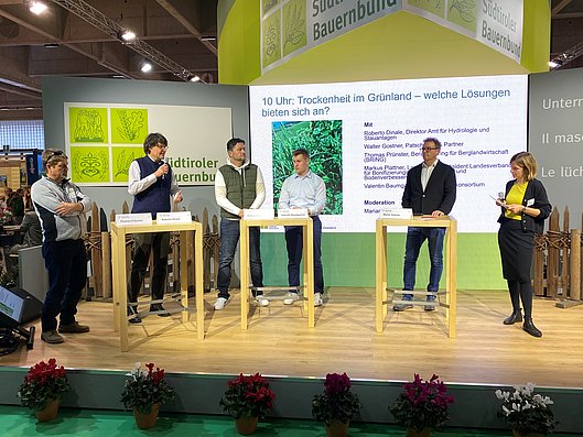 Wie Landwirtschaftsbetriebe im Grünland mit Wasser effizient umgehen und Trockenheitsrisiken absichern können, war Thema einer Podiumsdiskussion des Südtiroler Bauernbundes auf der Agrialp in Bozen. Vorgestellt wurden technische Lösungen wie sensorgestützte Bewässerungssysteme sowie das Projekt „Wasserpilot“.
