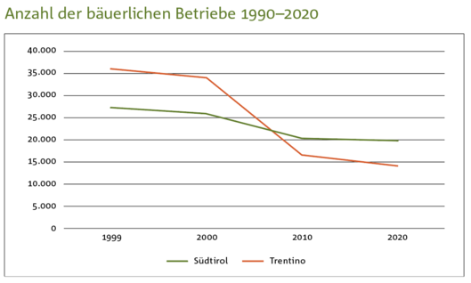 Die Herausforderung, diese Vielfalt in eine erfolgreiche Landwirtschaftspolitik zu integrieren, ist eine, der sich der Südtiroler Bauernbund seit jeher stellt. Das oberste Ziel des Verbandes war und ist es, alle Mitglieder einzubeziehen. Dies bedeutet in der Praxis, dass Höfe weitergeführt und Wiesen, Almen und Äcker trotz schwieriger Bedingungen nicht aufgelassen, sondern flächendeckend bewirtschaftet werden – zum Wohl der Kulturlandschaft und des ländlichen Raums in Südtirol. Denn eine aktive Landwirtschaft ist die tragende Säule für eine lebenswerte Peripherie. Die Zahlen belegen, dass dieses oberste Ziel des Bauernbundes, die Höfe zu erhalten und den ländlichen Raum zu stärken, dank umsichtiger Weichenstellungen in Zusammenarbeit mit Politik und Partnern erreicht wurde. Während in anderen Regionen des Alpenraums in den vergangenen Jahrzehnten ein massives Betriebssterben gewütet hat, steht Südtirols Landwirtschaft vergleichsweise gut da. So bleibt die Anzahl bäuerlicher Betriebe hierzulande seit Jahrzehnten recht stabil, während sie in der Nachbarprovinz Trentino von gut 28.000 Höfen im Jahr 2000 auf heute nur mehr 14.000 Höfe um die Hälfte gesunken ist.